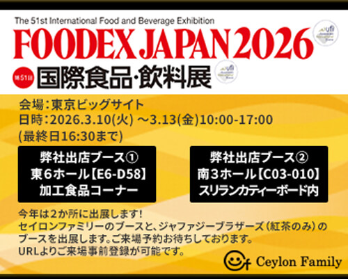 👑新商品が追加されましたCeylon Family 株式会社は、日本への紅茶原料の輸入や、現地でティーバッグ加工を行った商品の供給、また良質な産地にこだわった商品の輸入を行っています。 その中でお客様よりお声を頂き、現在ではココナッツ食品や、環境にやさしく食物を育てるココヤシ繊維肥料も取り扱うようになりました。 安全、美味しい、だけでなくその生産地の文化も感じられるような品物を取り扱っています。